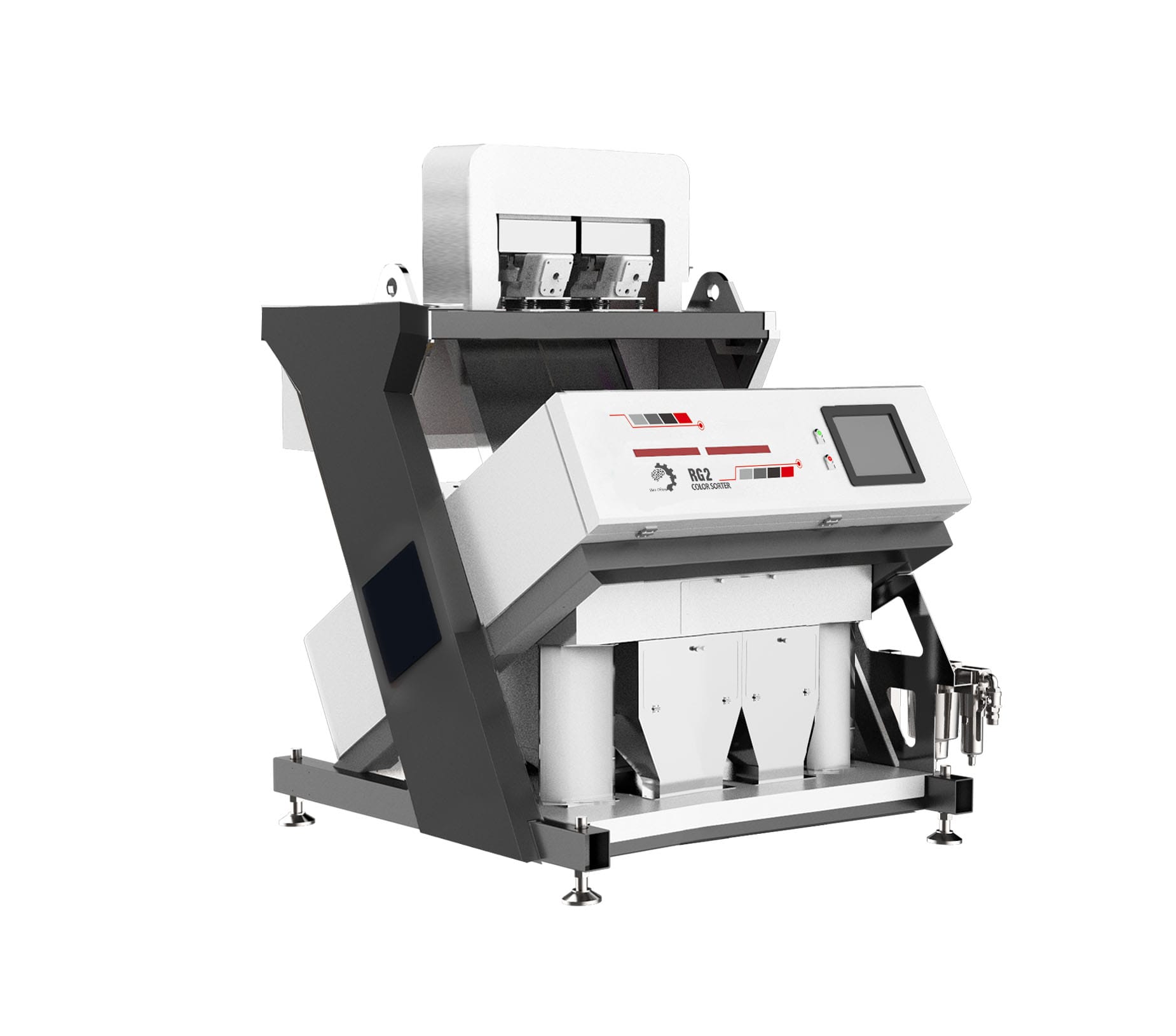Máy tách màu gạo RG2 ( Máy tách màu gạo 2 máng) tích hợp công nghệ phân loại ánh sáng khả kiến ​​tiên tiến là dòng máy chuyên biệt dùng để phân loại các loại gạo trắng, gạo màu… giúp nâng cao chất lượng gạo thành phẩm cho nhà máy.
