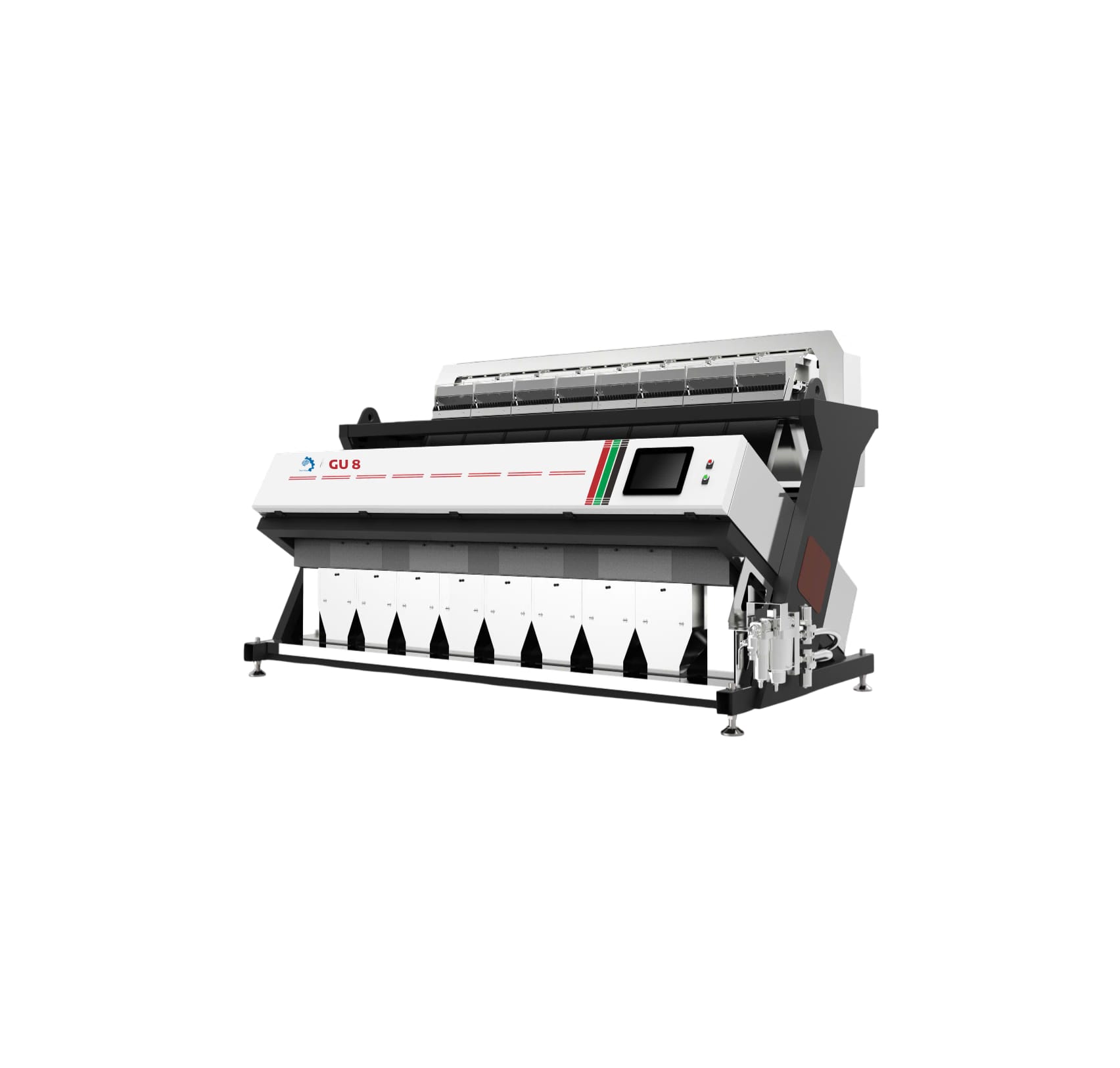 Máy phân loại nhựa lão hoá GU8 sử dụng hệ thống quang học có độ chính xác cao tùy chỉnh, có thể phát hiện chính xác vảy lão hóa và vảy huỳnh quang. Hệ thống nguồn sáng tập trung hiệu quả, ổn định và đáng tin cậy. Thuật toán tăng cường hình ảnh độc đáo có thể xác định các lỗi cực kỳ mờ nhạt.